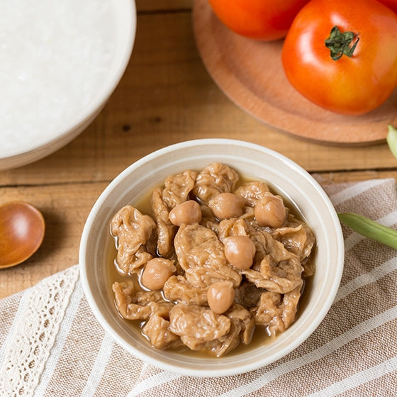 成份:麵筋 (小麥蛋白、大豆沙拉油)、水、雪蓮子(鷹嘴豆)、糖、醬油膏、非基因改造黃豆醬油、酵母抽出物(酵母抽出物、麥芽糊精、食鹽)、鹽、香菇抽出物 (糊精、香菇抽出物)