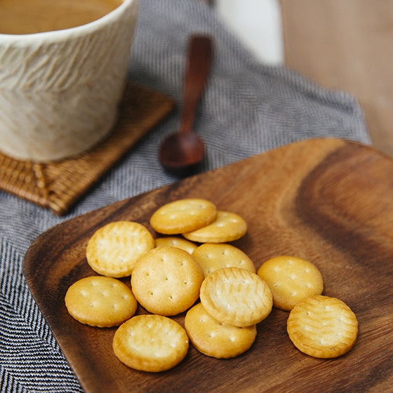 經典造型、簡單風格,金黃色的吉福小餅有著香醇牛奶香與酥脆的口感,簡單卻總讓人忍不住一口接一口,是令人懷念的童年美好滋味。