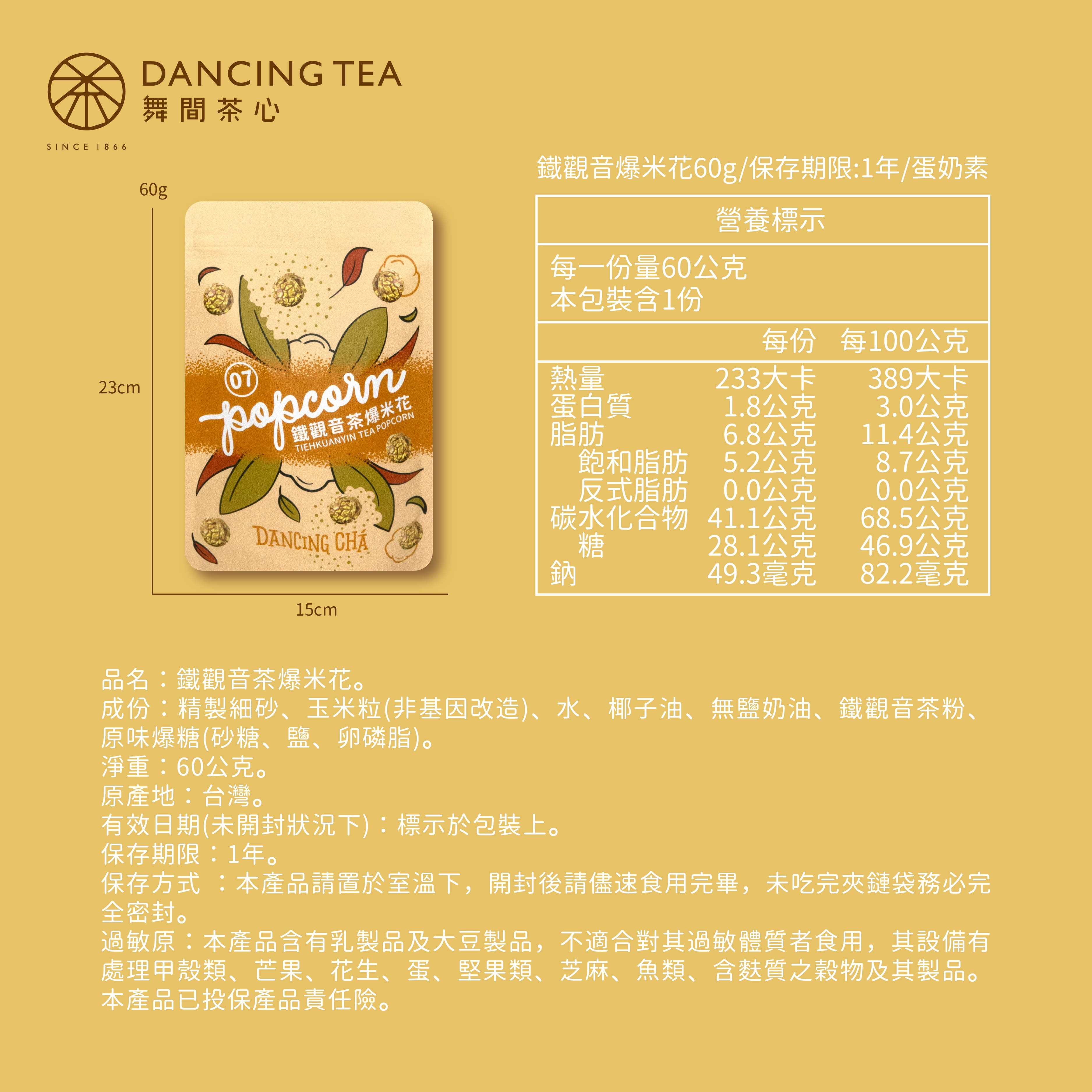 #5428 鐵觀音爆米花 Tiehkuanyin Tea popcorn (舞間茶心) 60g, 100/cs